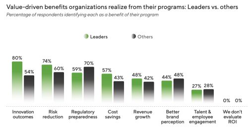 3. Werthebel und neue Risiken rücken stärker in den Fokus. Während sich die Kernprioritäten in den Programmgrundlagen verankern, verlagern Unternehmen ihren Fokus auf Wertschöpfungspotenziale wie Kreislaufwirtschaft und verantwortungsvolle KI, sowie auf neue Risikobereiche wie Datenethik und digitale Rückverfolgbarkeit.